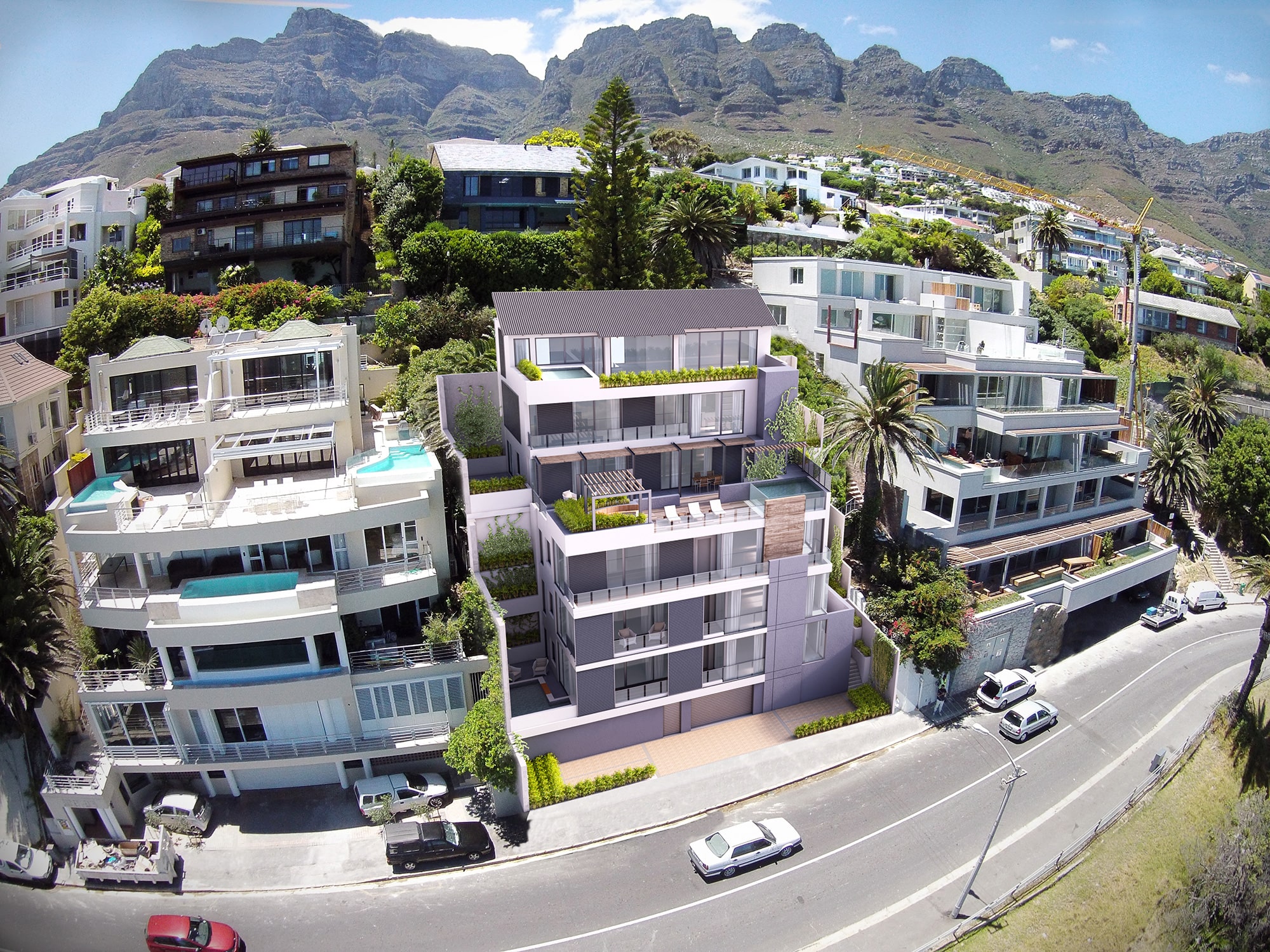 A single six-storey five-apartment residential building in Camps Bay, two offering large outdoor terraces, and building basement parking.
